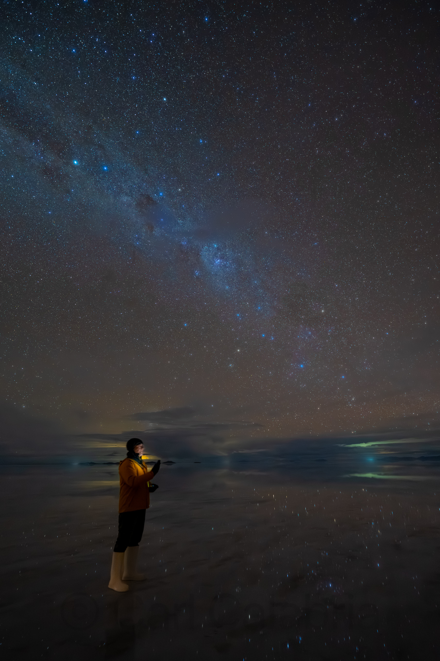 My day started at midnight when our group returned to the Uyuni salt flats for our first opportunity to photograph the Milky Way. Because I did not have the optimal tripod head for shooting a panorama of the sky, I opted to focus on making a single image and used myself as a foreground object, using my iPhone to illuminate my face. As a first attempt at astro photography, I am pleased with the outcome.