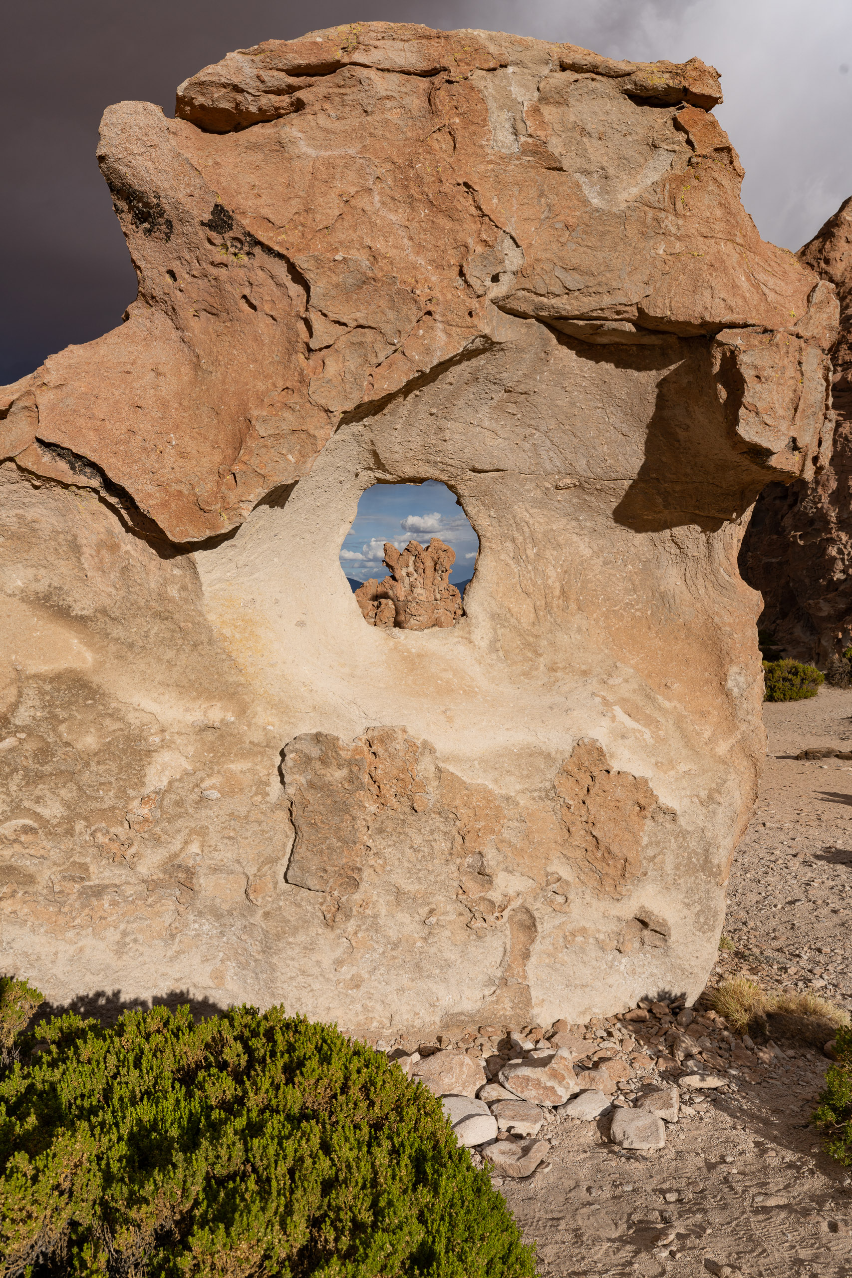 The Árbol de Piedra (“Stone Tree”) is a 5–7 meter tall volcanic rock formation in Bolivia’s Siloli Desert (Eduardo Avaroa National Park). Shaped like a tree with a thin stem, it is a natural monument sculpted over thousands of years by high-altitude winds carrying sand, creating a striking “mushroom” appearance.