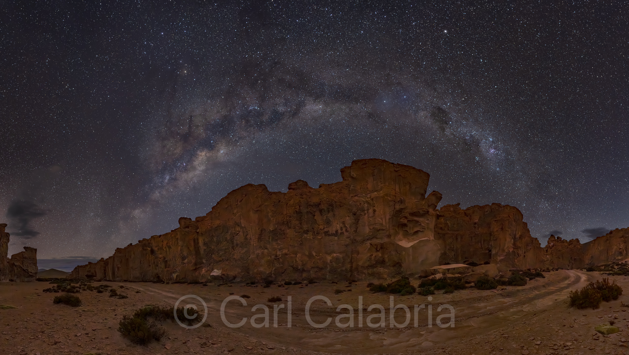 Early this morning (1-3 AM), conditions were ideal for photographing the Milky Way, as was our location, which offered great foreground subjects. The abundance of foreground options allowed members of our group to spread out, allowing each of us to enjoy the experience in total darkness and total solitude. As much as I enjoyed the photography, I felt at one with the universe in these moments in a way I have never before. Both of these astrophotographs are composed of two rows of ten images that are “stitched” together with specialized software to create a wide-angle panorama. The image below is my favorite composition, but I have yet to coax out the colors of the gases, which was done in the image above.
