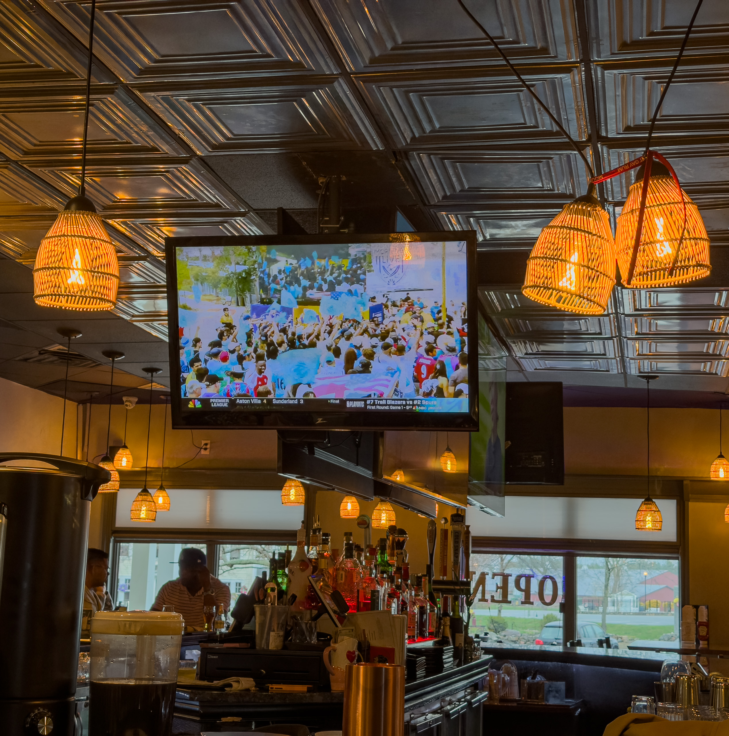 It is the custom on my soccer team to follow every match with an aprés at one of our houses or a restaurant if we are playing an away game. I volunteered to host today’s gathering and decided to try something new. Since we had an early game (8 am), I thought it would be fun to do breakfast food on the griddle rather than the customary burgers and beer. We had pancakes, breakfast sausage, bacon, eggs, and hash browns. Thankfully, one of my teammates offered to help me man the grill, allowing us to keep pace with demand. In addition to the cooked food, we had homemade bread baked by one of our players, and macerated strawberries to top the pancakes. I didn’t have time to get a photo, so I pulled this one from our security system.