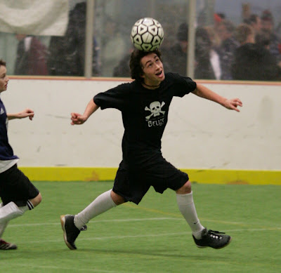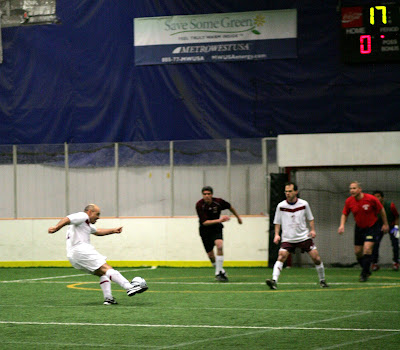 Nicolai took this photo of me this evening. In thirty years of playing soccer, it is the only one that exists of me scoring a goal (despite having scored hundreds over my lifetime). I received a nice pass in the middle of the field and crushed a full volley into the lower left corner. You only need one shot like this every couple of years to keep you wed to the sport. That perfectly timed shot, struck with authority, that finds the back of the net in the air. Click on the photo for a larger view.