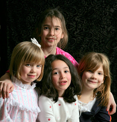 Maya had a mock slumber party with her friends this evening. She planned the event (American Girl theme) and designed her own invitations earlier this week. The girls were all giggles for most of the evening pausing for a few photos at the end.
