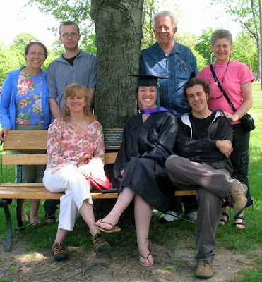 Jeanine returned this evening from four days in Indiana where she celebrated Erica’s graduation from the Univeristy of Evansville with her dad, sisters Lauren and Susan, and nephews Gabriel and Luke. The family is pictured here gathered around the bench donated in her mother’s memory to the Lebanon Memorial Park.