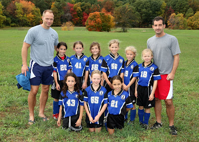 I took Maya to her soccer game this morning. It was an exciting 0-0 tie. Both teams had many scoring opportunities but no one could seem to find the back of the net. After the game we took advantage of the beautiful background for a team photo.
