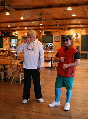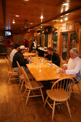 The cabin is quite cozy, but feature only one bathroom. Terry, the only women gets one of two bedrooms on the ground floor. The snorers are banished to the second floor dormitory style bunks. We arrive in time to watch the end of the Soxs game.