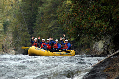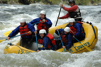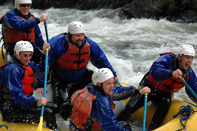 The team poses in front of our rafts for our mandatory team photo. There seems to be a school of thought now that I organize these events just so I can dress them up in funny garb.