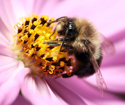 I believe this bee was either dead or extremely considerate of the photographer. It did not move at all. Perhaps it was drunk on pollen and sleeping off the hangover. I guess if you are a bee and you are going to kick the bucket, this is not a bad way to go out.