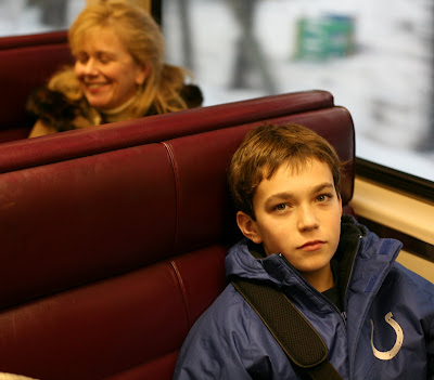 Over the course of the evening we enjoyed Italian sausages, Philly cheese steaks, Bavarian pretzels, bagels and various warm beverages. Jeanine happily conficasted all my cash for the food purchases. Fortunately, all mass transit was free after 8PM allowing us to return to Concord without funds.