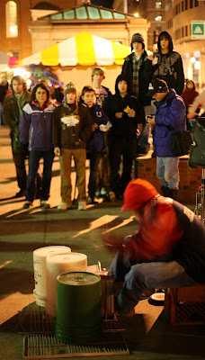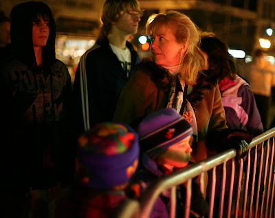 My beautiful wife drew my eye more than the parade she was positioned to watch. We also enjoyed fireworks from inside the Finagle a Bagel store which afforded us warmth, food and the entertainment of the conveyor belt bagel slicer.