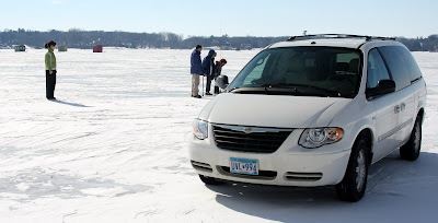 We had lunch in the middle of a frozen lake today. I must confess, that I was not at all comfortable with this venue. You could hear and feel the ice moving beneath your feet. Mark assured me we were safe but I was quite relieved when we reached terra firma again. Notice the little ice huts in the background. For reasons know only to Minnesotans, natives erect small houses on the frozen lakes, fish through holes in the ice and drink lots of beer. Wait, the reason has just become apparent to me.