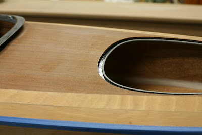Today is the first day of a one week vacation before I start my new job at Sonos. With any luck I hope to finish my kayak. Pictured here is the hatch opening. I fabricated the gasket channel out of carbon fiber and am extremely pleased with the results. After varnishing I will fit the channel with a 3/8 inch wide closed cell foam gasket.