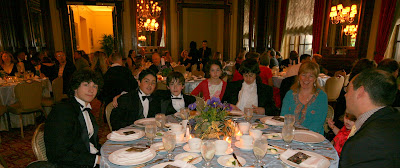 This evening, Nicolai is being honored by the Free Wheelchair Mission for his fundraising efforts on their behalf. His total now stands at $110,000 which translates into 2500 wheelchairs for the disabled of Tanzania. The banquet is being held at the beautiful Fairmont Copley Hotel and we are treated to this vision of our boys looking quite dignified.