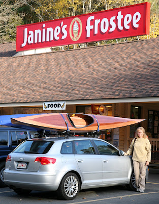 Despite the cool overnight temperatures, Jeanine and I were almost too warm in our tandem sleeping bag. We broke camp and headed south in search of a kayaking destination. We stopped in Florence for a great breakfast at a diner which featured a 5 egg omelette (which we split) and a strawberry covered Belgian waffle.