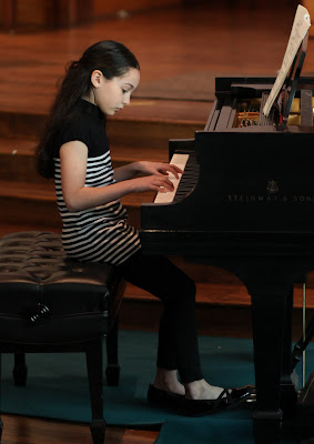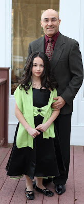 After a haircut and another clothing change she is ready for a special night out with her dad. The evening begins with dinner at the Hana Mizuki Japanese Steak House (Benni Hana style table side chef) in the company of her friends Lydia and Claire and their fathers. Then we attended the annual father-daughter Shamrock Ball. Maya looked very grown up this evening in her new gown and her father could not have enjoyed himself more dancing with his not so little girl.