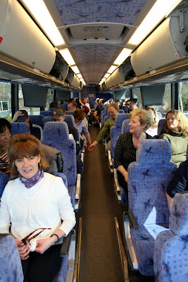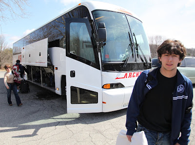 As has been the case since buses were invented, the adolescents commandeered the rear, and parents were relegated to the front. The bus featured a nice video system, and the boys selected Borat for the movie, after which video choices were made by the parents.