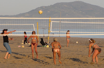 Major discovery on the way back to my tent this evening. I found a beach with dozens of volleyball nets and some serious players in action. The caliber of play was quite high and I will have to tune up my game a little if I want to join play on a future trip.