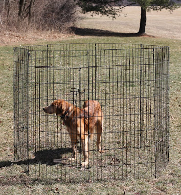 Nala poses inside the exercise pen she used as a puppy. It is another one of the items going to Craig’s List. She seemed a little annoyed to find herself once again caged after having graduated to a free run of the yard.