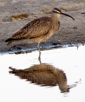 I am not sure what this fellow is although I am reminded of an Ibis. He is focused on this tide pool and could care less about the volleyball action on the beach. Update: A blog follower has informed me this is a Whimbrel. The Whimbrel Numenius phaeopus, is a wader in the large family Scolopacidae. It is the one of the most widespread of the curlews, breeding across much of subarctic North America, Europe and Asia as far south as Scotland.