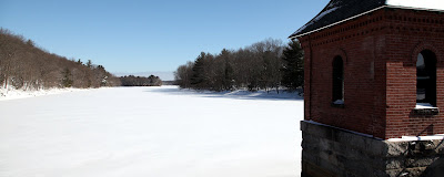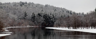 I decided to try a back road commute this morning. It added 15 minutes to the drive but took me over the Cambridge Reservoir, where I captured this image of the fresh snowfall over the frozen water.