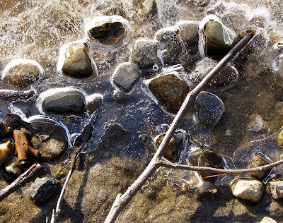 I swung by Walden Pond today and was intrigued by the ice formations to be found on the shoreline. Most of the pond is still frozen but you could literally hear the groaning as the advance of spring begins to thaw the ice.
