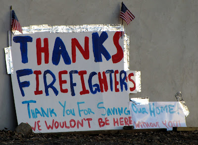 Everywhere you turn there are signs expressing deep appreciation for the firefighters, police and first responders whose heroic efforts saved many homes and many lives. Although something like 80 homes were lost, it was apparent to me that many hundreds more were saved. I often saw one house leveled to the ground with another standing 200 feet away without a hint of damage.