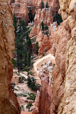 To walk among these amazing geologic structures is very exciting. They range in size from a couple of feet tall up to several hundred feet tall. Some are short and squat, other are skinny and tall seemingly poised to topple at any moment. During a ranger presentation I learned that no one has ever been killed by falling rock on this trail although massive boulders have fallen right on the path from time to time.