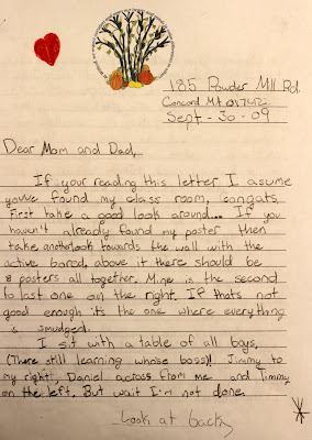 This is the first of a three-page letter from Maya that was waiting for me as I entered Maya’s classroom. My favorite line: I sit with a table of all boys, they’re still learning who’s boss! This child is going to go far.