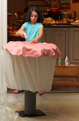 Maya is going to be a cupcake for Halloween. We worked together to fashion the skeleton over the weekend. Today she requisitioned one of my speaker stands as a modelling platform and is applying sprinkles to the frosting with hot melt glue. Of our children Maya has emerged as the most construction project oriented and I am still holding out some hope for one engineer in the family.