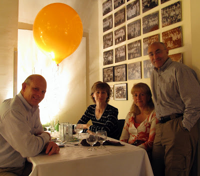 Jeanine and I had dinner this evening at Bullfinch’s in Sudbury with my high school wrestling partner Tom and his wife Karen. Every year the Metzolds host a Fourth of July extravaganza which we enjoy immensely but rarely does that give us an occasion to spend one on one time with them. Karen and I share the same birthday (I am one year older) and Jeanine arranged for this intimate celebration. It was a delightful evening of fine dining and great conversation. Outside of my family I have known Tom for longer than anyone else in my life and feel fortunate that we live in such close proximity. The Metzold’s son Evan is in his first year at the NYU film school and son Eddie attends Concord Academy. Tragically, one of Evan’s close high school friends died earlier this week of swine flu serving as a painful reminder that life is short and must be lived fully each day.