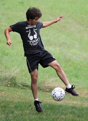 Another killer work day in the office. Third 18 hour work day in a row. I am exhausted but my team made a nice breakthrough on the design issue we have been chasing. The major IT transition is largely completed and has gone fairly smoothly. No time for photography so I am posting an image I took of Kyle last weekend. He and Nico were kicking the ball around in the backyard. These days they travel in such different circles it is rare when they get to hang out with each other and it gave me great joy to watch them playing together as they did when they were younger.