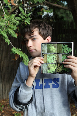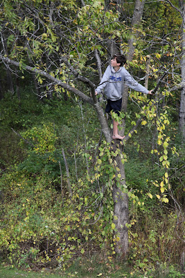 I spent a good part of the afternoon with Nicolai hunting for leaves. He has a science project which involves collecting leaf and needle specimens from a list of 50 trees. He can earn extra credit for having 20 photographs showing him in the act of collecting. This project took us all over the town of Concord guided by a Google Earth map showing us where each tree type could be found.