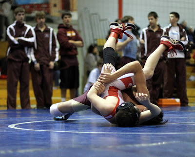 Nicolai wrestled in his first two high school matches today with a split outcome. He lost by a score of 9-1 to his first opponent and won with a first period pin (shown here) in his second match. He showed great composure and strength but will need to continue to develop his technique and endurance.