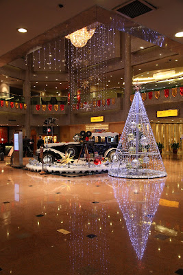 The Crown Plaza Hotel will be home for the next three nights. Christmas decorations dominate every hotel lobby and shopping area. This one features an antique car and movie making theme. I could not figure out the holiday tie in but it certainly made for a nice photo.