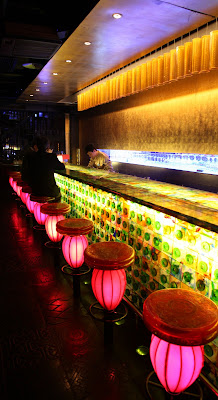 After meetings today at our factory in Pudong and before dinner our hosts take us to the famous TMSK bar in the XinTian Di shopping area. This place is a photographer’s dream and while others drank and socialized I soaked in the beautiful light. Illuminated glass is used everywhere in the design to dramatic effect.