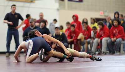 Nicolai wrestled brilliantly today winning 9-3 over a strong opponent from Wayland. Even though I think he earned a pin, (study the first image carefully), I am glad he went the whole six minutes for the conditioning value. Nico accepted a forfeit during the second match of the double dual meet which was fortunate because his elbow was quite tender after the first. The results of Kyle’s MRI revealed muscle and tendon damage and although surgery is unlikely it is very clear he will miss the remainder of the wrestling season. He will begin physical therapy as soon as the pain subsides and with any luck will be as good as new in time for the soccer season.