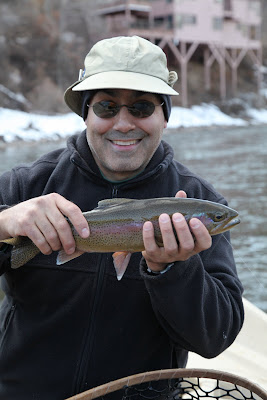 I am up before sunrise and head out to see what the morning light has to offer. I find this nice view of the Colorado River along whose path much of our coming adventures will revolve. If this scene looks cold, I will have accurately conveyed the setting. When I return to the hotel, Mark is awake and we grab a hot breakfast before heading out for a day of fly fishing on the Roaring Fork River which will end at its confluence with the Colorado.