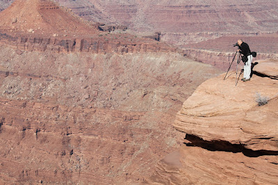 We spend the remainder of the afternoon and evening enjoying Arches National Park where there is no shortage of stunning scenery to capture. Mark has a great photographic eye and an affinity for shooting tiny details through the macro lens while I tend to look for the big picture vistas. His photo above of the lichen covered mounds is one of my favorites from the trip. The subtle color palette combined with the strong opposing diagonal elements makes for a really sophisticated composition and great image.