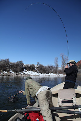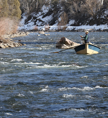 I made arrangements with a local outfitter to provide us with a drift boat and knowledgeable river guide. Mark will fish from the forward position, our guide will handle the ours from the middle seat and I will take up the rear position from which I will fish and photograph. We meet up with our guide at 9am and are on the water by 10am. The morning starts cold but the temperature quickly rises and the weather could not be more glorious.