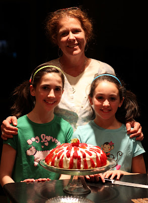 When we returned from the talent show the family enjoyed an Angel Food cake prepared from scratch by Maya and her Aunt Lauren. By the time I set up a proper fill flash, the cake was already being devoured and I had to settle for this poorly lit photo of the cooks and their creation.