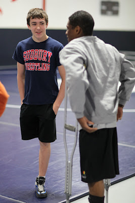 This morning Nicolai, Jeanine and I drove to Franklin, MA to attend a wrestling clinic conducted by Anthony Robles. A junior at Arizona State University, Anthony is a two time All-American ranked third in the nation at 125 pounds. He was born without a right leg just like Nicolai and spent time after the clinic giving Nico some private coaching. Beyond his wrestling prowess we were all impressed by Anthony’s demeanor. A nicer man you will not meet and we were delighted when he accepted our invitation to drive him to the airport for his flight back to Arizona. We will look forward to attending the NCAA Nationals next year and watching Anthony go all the way.