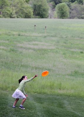 On Thursday evenings I usually play soccer under the lights at CCHS. Today I decided to give my troubled left knee a break and settled into the couch with the DVR remote after dinner. Just as I was getting comfortable Maya began urging me to go into the back yard and throw the Frisbee with her (something we have never done before). Although the presence of mosquitoes made it a short outing I really enjoyed playing with Maya who when measured earlier this week has grown a full inch since January.