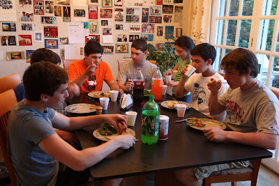 When I returned from work this evening I found our home chock full of kids. Nicolai had 5 of his friends over, Maya had 2 and Kyle, who stepped up as grill master, was joined by Hannah. Unplanned gatherings such as this are something we truly enjoy as a family and really makes us feel like an important part of our kids lives and our community. Later on I took Nico and his friends plus one we picked up on the way to the movies to see Iron Man 2.