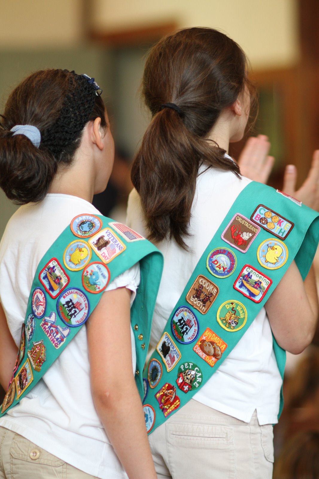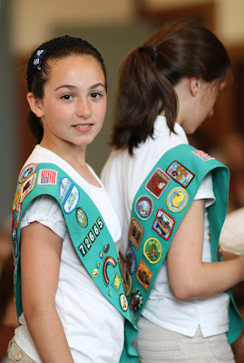 Maya graduated from a Junior Girl Scout to a Cadet in what is called a Bridging Ceremony this evening. The threat of thundershowers moved the event from the Old North Bridge to the Scout House. She was joined by her good friends Sarrinaugh and Allison who have shared the Girl Scout experience with her since we moved to Boston.