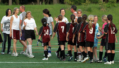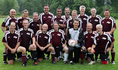 Hours of watching World Cup soccer this weekend did little to improve our game as my team wrapped up the spring season with a 0-1 loss. We had several opportunities to score but the back of the net was not to be found. My knee held up well although the missed practices needed to rest it were apparent in my sub standard conditioning. Missing from the photo and game due to injury is Jamie one of our strongest players and John one of our most reliable.
