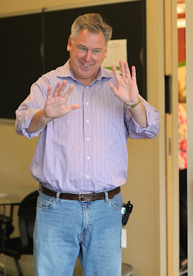 Jeanine and I attended Maya’s Portfolio Celebration this morning where we had an opportunity to view her best work from the past school year. Each child in the class prepares a very official looking portfolio of their best work in each subject area to which they add a statement explaining why they selected each piece. It is a great opportunity for parents to share in the scholastic accomplishments of their child and in our case there was much to admire and be proud of. Maya poses with the welcome poster she helped create for the special occasion.