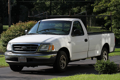 Kyle and I spent the better part of the afternoon and early evening inspecting and testing used trucks. He has narrowed his choice to Ford F-150s and we looked at four of them. I tried to document the issues with each truck to help us remember. Here I have managed a self portrait while trying to document a crack in the side view mirror. Our travels took us to Worcester, Ashland, and Lexington. The final truck, a 2002 model year, with airbags and air conditioning looked like a good choice and Kyle will be finalizing the negotiations tomorrow.