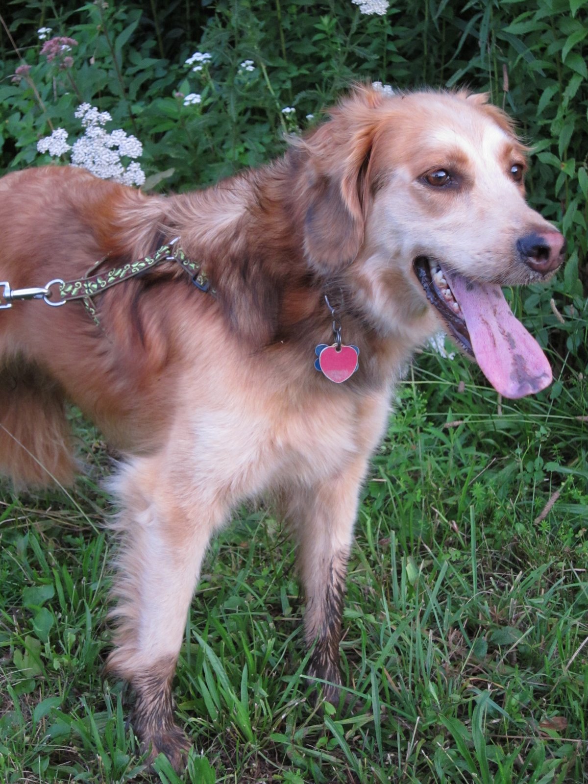 This evening Jeanine an I took her on a walk in our back field which was occupied by a flock of geese. Neither of us could resist the temptation to let her chase them. Once liberated she made short work of dispersing them to the winds and took several high speed victory laps before disappearing into the thick underbrush which surrounds the adjacent pond. Just as we had surrendered all hope of seeing her again, she emerged, covered to the knees in mud looking quite content. After hosing her off she was returned to incarceration behind the electric containment fence and liberty privileges will not soon be granted again.