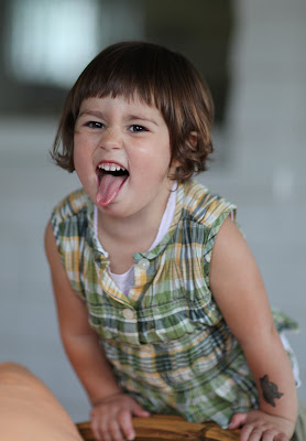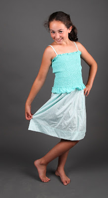 Maya models the new summer dress that her grandmother made for her. I probably should have spent a moment ironing it first but I am a man. I can claim ownership of an iron and the knowledge to use it (to affix wood veneers with thermally activated adhesives to MDF substrate or to steam wood for bending).