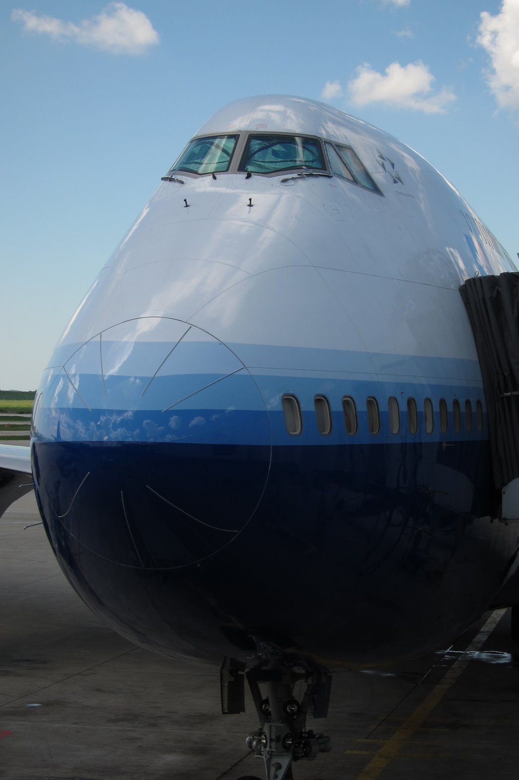 Today, I leave on a business trip to Hong Kong and China. The total elapsed travel time is about 24 hours, and with a day for night time zone change I will not arrive until Sunday evening, local time. Does the nose of this plane remind anyone else of a dog’s face?