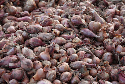 Kyle has been after me to teach him how to use a chainsaw (he feels this would be a good skill to have for his landscaping business). This afternoon he received his first lesson and for homework we felled an oak tree that has been depriving Jeanine’s tomato plants of adequate sun. We had to exercise great care because the tree was naturally poised to fall directly onto the raised bed garden containing the tomato plants. Using a carefully cut hinge we dropped that tree within millimeters of our target. You would think that today’s photo , therefore, might show Kyle in the act of sawing on a tree but I was more concerned with carefully monitoring his technique rather than capturing it. Instead we have a bunch of bulbs from the Verrill farm stand where I made a brief visit to pick up some fruit and bread.